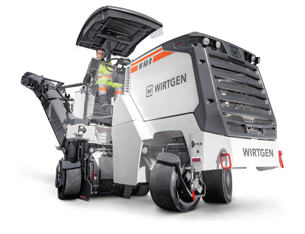 Small milling machines are equipped with a wheeled chassis and a milling drum positioned at the rear. The granulated RAP which is broken up by the rotating milling drum is transferred to a slewing and height-adjustable discharge conveyor and immediately loaded onto waiting transport vehicles. The compact rear loaders are highly maneuverable and their rear right wheel can be swiveled in when milling flush to the edges of obstacles. A variety of different milling drums are available, enabling the small milling machines to cover a wide range of applications extending from partial pavement rehabilitations and tie-in milling to the rehabilitation of industrial floors.